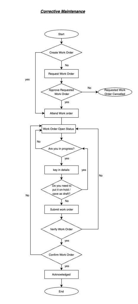 Corrective Maintenance Work Order FlowchartCreated OnFebruary 27, 2026byaini Print You are here: KB Home Tutorials Corrective Corrective Maintenance Work Order Flowchart < Back