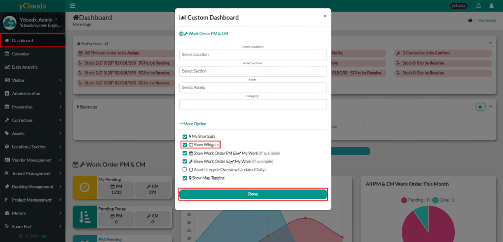 - Once selected, user can choose which work order (maintenance) results to display on your dashboard