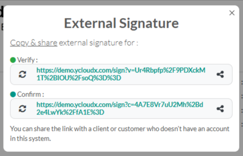 - Admin needs to copy and share the generated link with external parties, such as client or user who does not have account in the system