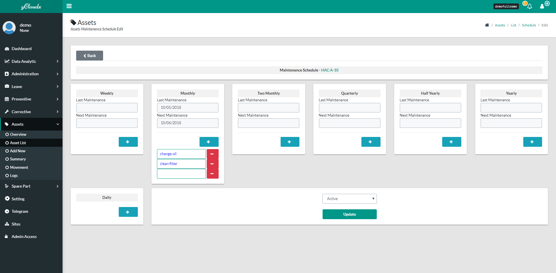 1. Proceed to Asset > Asset List > (Asset Name) > Schedule > Edit
