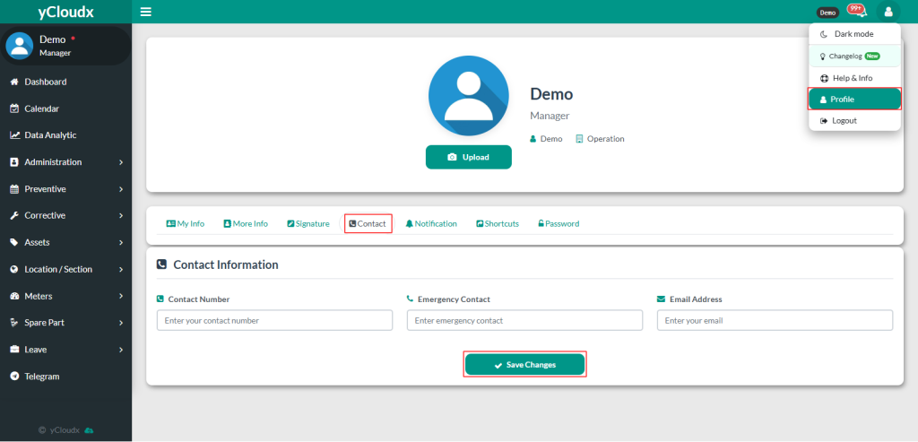 3. Fill in the contact details, including the email address, emergency contact number and email address in the provided fields.