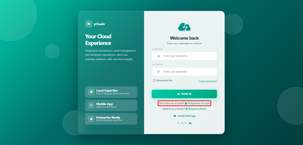 Click Request an Account to access the registration page