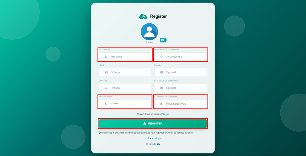 The registration request will be sent to the system administrator for approval