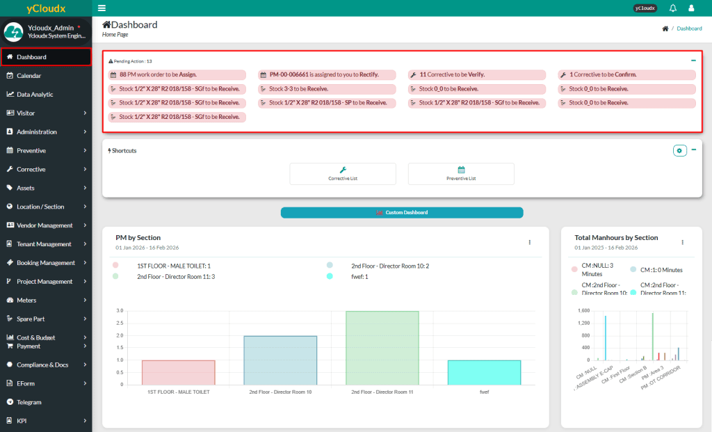 3. All pending tasks that require attention are displayed in red highlighted tabs