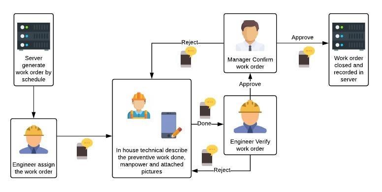 The first step when a new preventive work order is issued either by manually insert or system-generated, the status will be “New”.